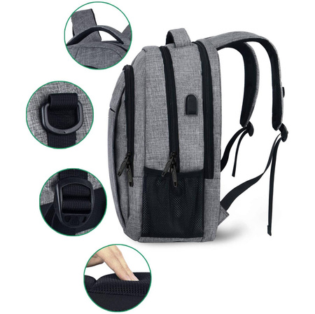 - Plecak podróżny miejski MATEIN na laptopa 15,6”, kolor szary, 45x30x20 cm